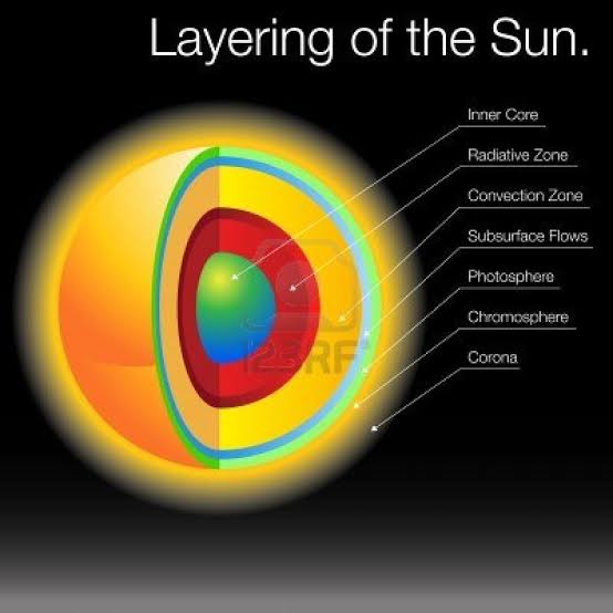 Sun have three inner layers which is Core, Ratiative zone, Convection zone. Core is the hottest of all the sun's layers. Where nuclear energy is made, Ratiative zone in this zone nuclear energy from the core flows out as Electromagnetic radiation, Convection zone in this zone light is turned into heat and flows outward to the photoshpere.